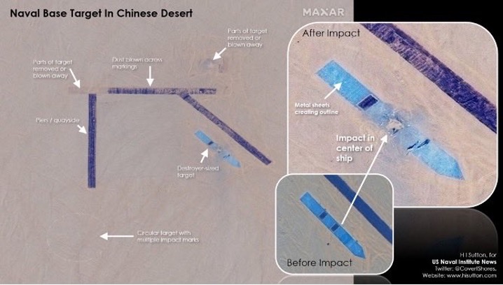 Around 2013, civilian satellite imagery began to reveal “targets” in the Gobi Desert, which looked like simulations of aircraft carriers and large destroyers. Later, “missile impacts” were detected on those areas. It is presumed that those anti-ship ballistic missiles (ASBM) seekers are based on optical systems and is primarily intended to hit large and slow-moving objects.